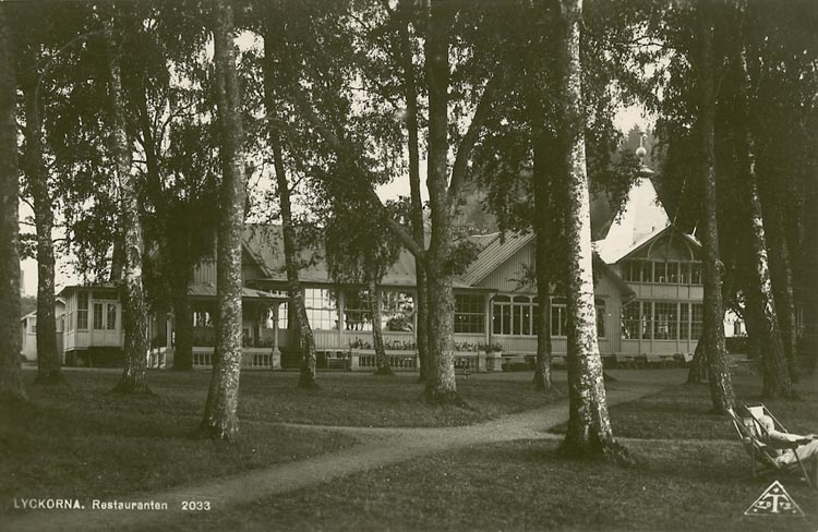 Enligt Bengt Lundins noteringar: "Lyckorna. Restauranten. Par i vilstolar".