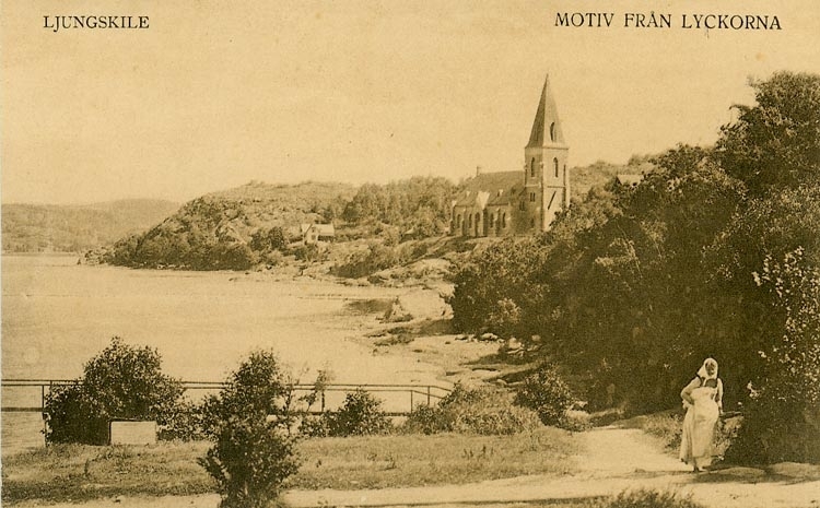 Enligt Bengt Lundins noteringar: "Motiv från Lyckorna. Strandvägen med kvinna".