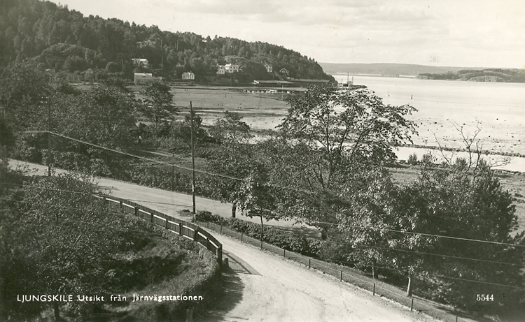 Enligt Bengt Lundins noteringar: "Ljungskile. Utsikt från järnvägsstationen. Södra nerfarten".
