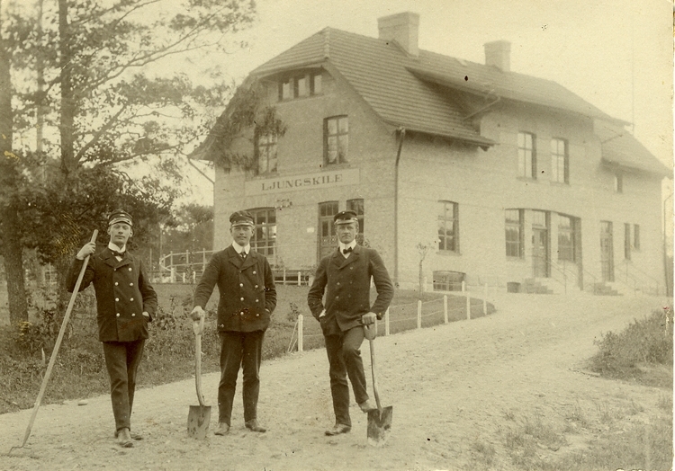 Enligt Bengt Lundins noteringar: "Ljungskile. Stationspersonal med spadar".