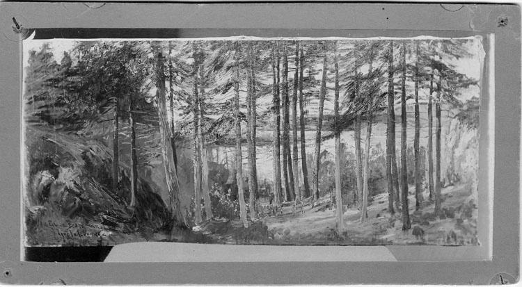 Handskrivet på kopian: "Motiv från Gustafsbergsskogen orig af Elice Bergman 1903".