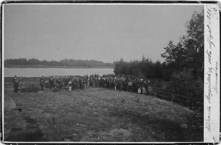 "Skogsodlingens vänners sista utfart på Hunneberg 1884" enligt text skrivet på baksidan.