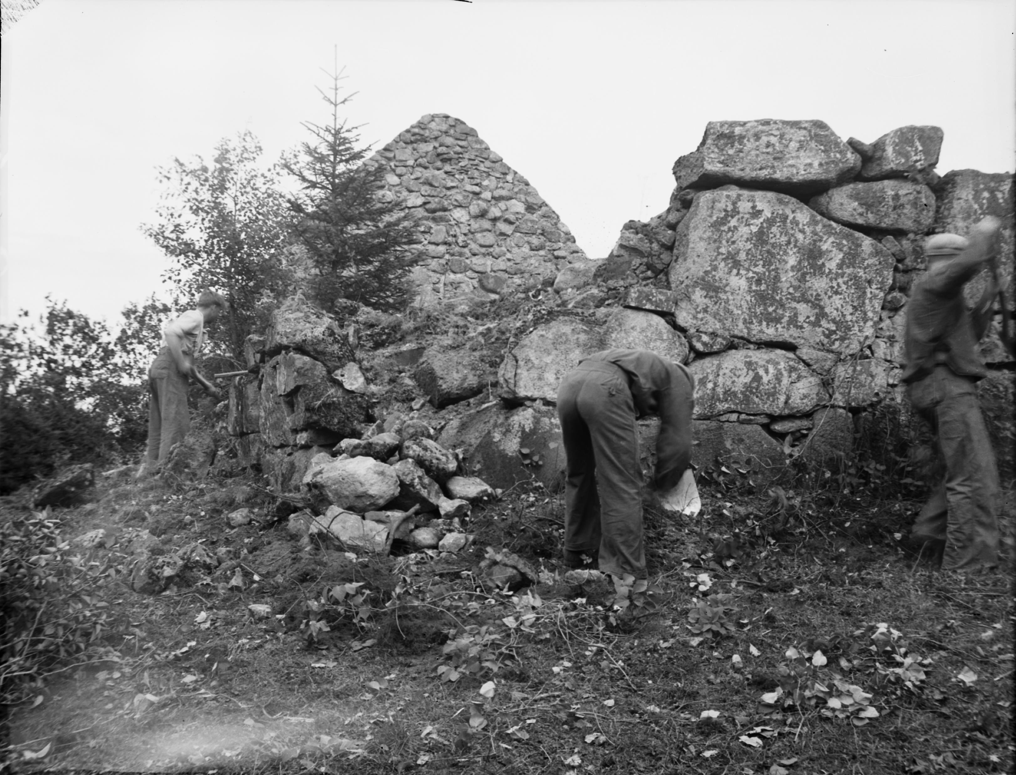 Kyrkoruinen från väster. Under pågående uppröjningsarbete.