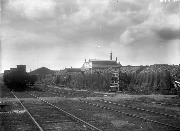 Enligt tidigare noteringar: "And. Smiths koks o kolupplag i Uddevalla hamn, vid staketet ställningar för landgångar vid lastning."