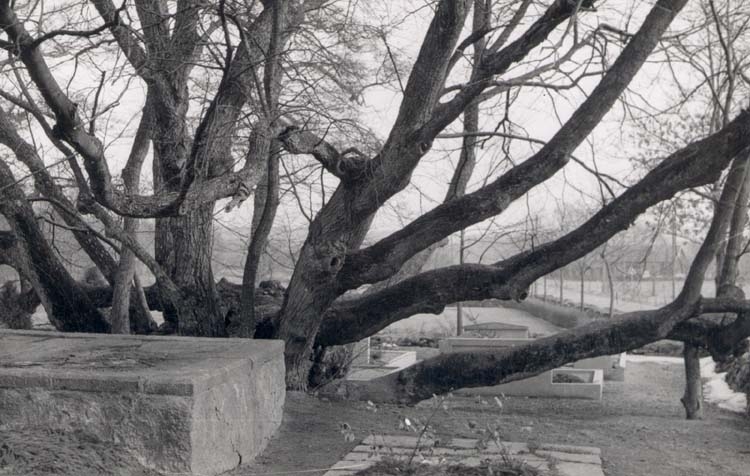 "Den 9-stammiga linden på Torslanda kyrkogård. 30 mars 1956."