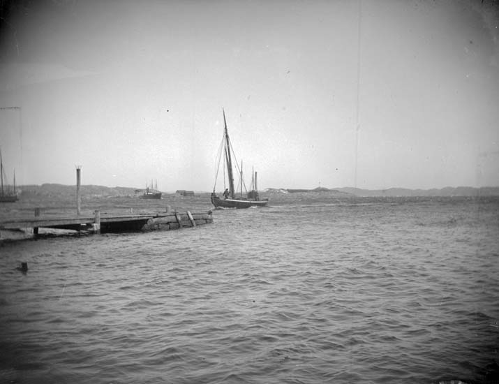 Enligt text som medföljde bilden: "Lysekil. Bryggarebåten lägger till vid Lyckes brygga."