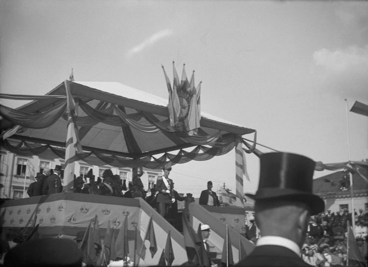 Enligt senare noteringar: "Från statyavtäckningen. Kungen på talartribunen. 31/8 1915. Bättre."