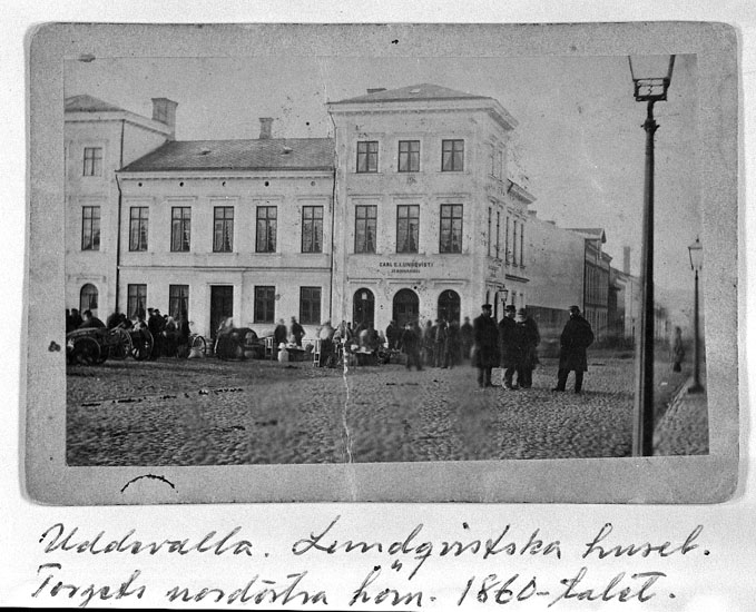 Enligt tidigare noteringar: "Lundqvistska huset, Torgets nordöstra hörn. 1860-talet.
