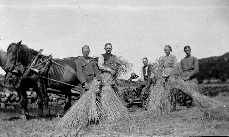 Enligt medföljande text: "Rågskörd i Gåre 1918".