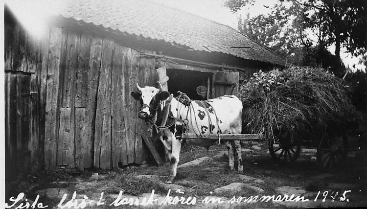 Text på kortet: "Sista hölasset köres in sommaren 1945".