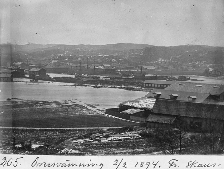 Text på kortet: "205. Översvämning 2/2 1894. Fr. Skansberget mot sydost".