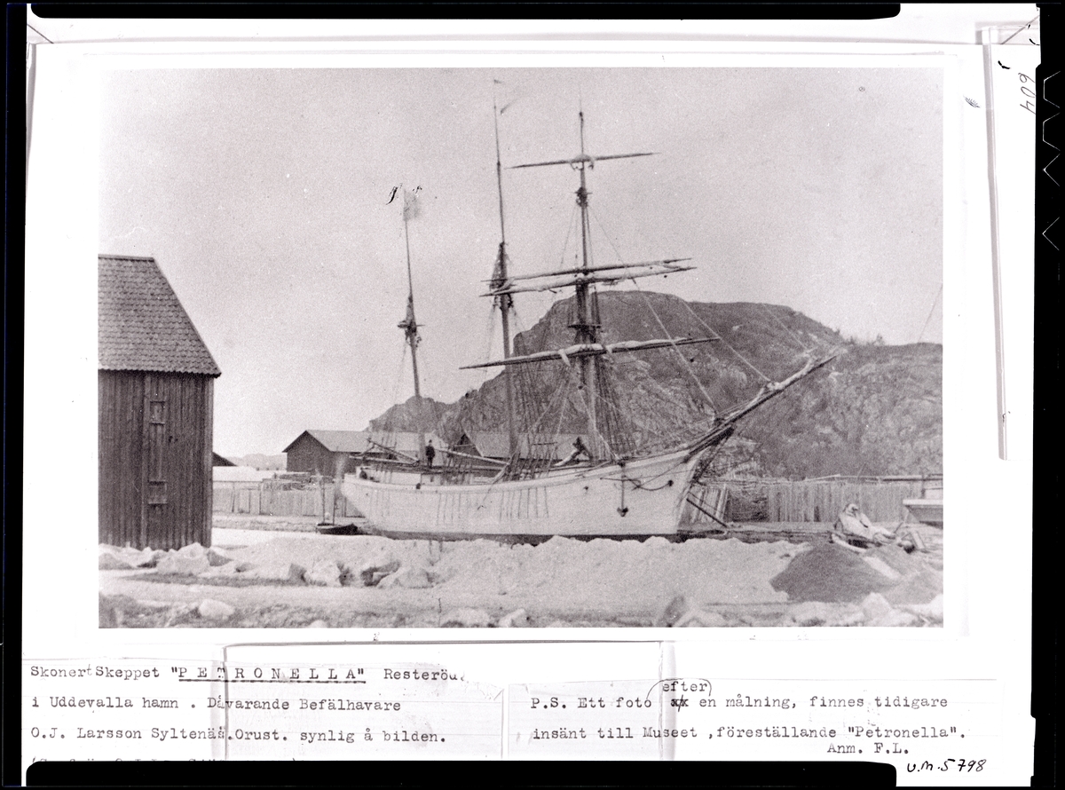 Text på kortet: "Skonertskeppet "Petronella" Resteröd i Uddevalla hamn.