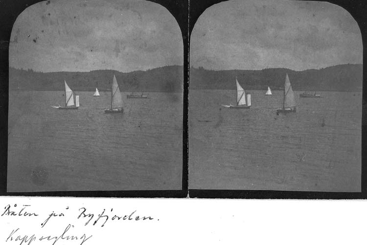 Text på kortet: "Båtar på Byfjorden. Kappsegling".