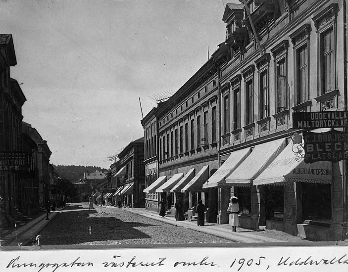 Text på kortet: "Kungsgatan västerut omkr. 1905, Uddevalla".