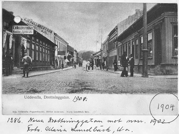 Text på kortet: "1286. Norra Drottninggatan mot norr. 1902. Foto Maria Lundbäck, U-a".