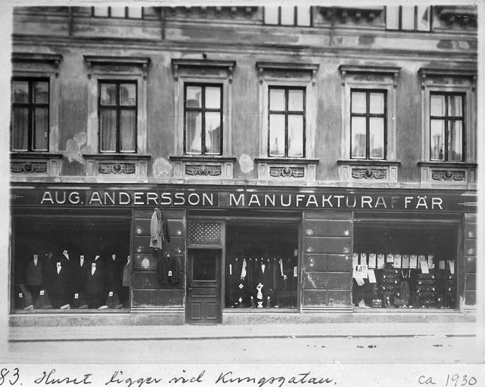 Text på kortet: "83. Huset ligger vid Kungsgatan, ca 1930".