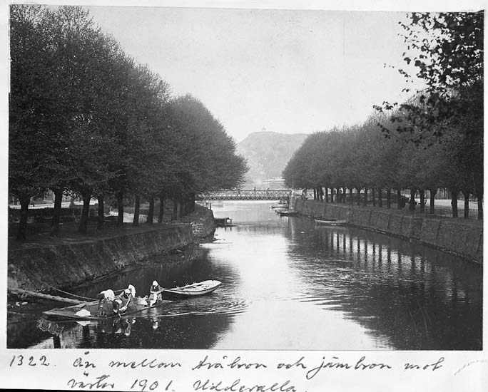 "Ån mellan träbron och järnbron mot väster 1901. Uddevalla" enligt text på fotografiet