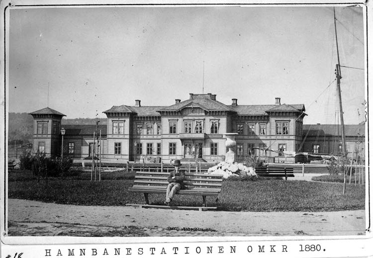 Text på kortet: "Hamnbanestationen omkr. 1880".