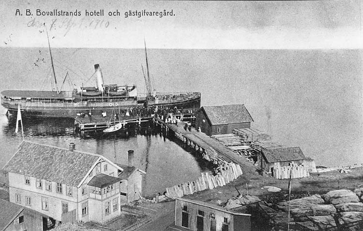 Text på kortet: "A. B. Bovallstrands hotell och gästgifvaregård den 7 sept 1910".