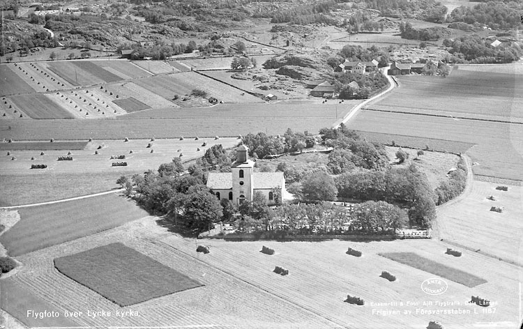 Enligt text på fotot: "Flygfoto över Lycke kyrka".