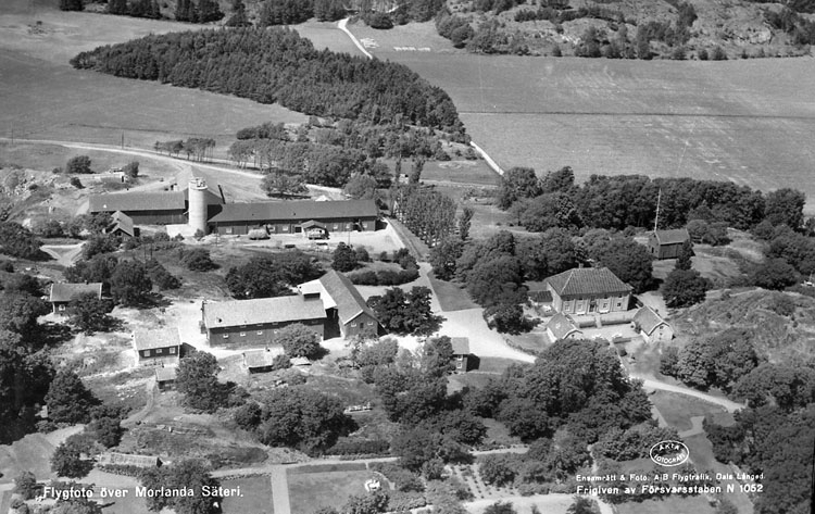 Vykort. "Flygfoto över Morlanda säteri"