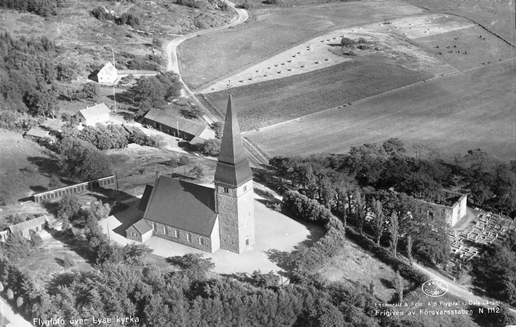 Enligt text på fotot: "Flygfoto över Lyse kyrka".