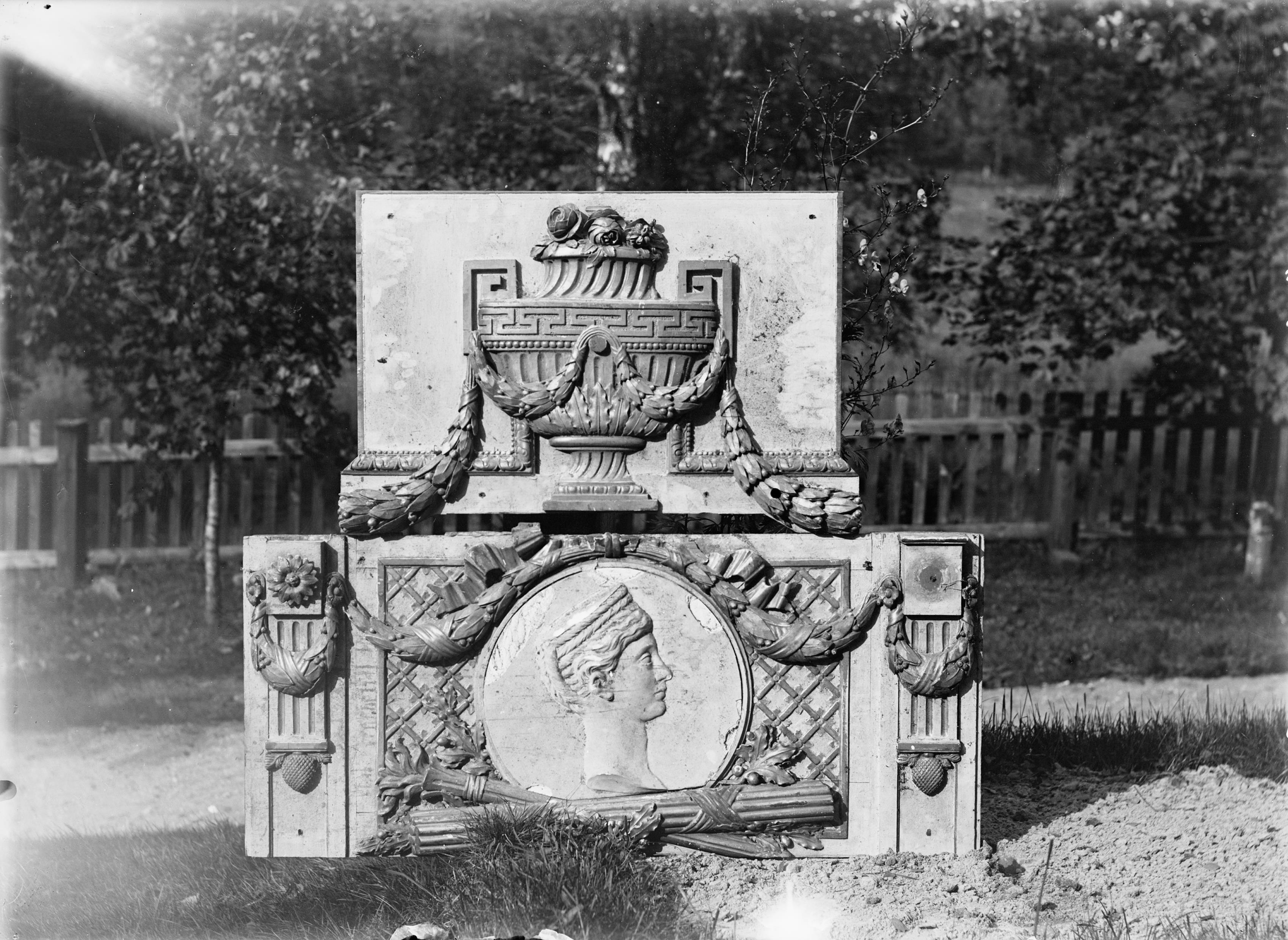 Dörröverstycke, skulpterat och förgyllt. Sålt 1932 till Beatelund.