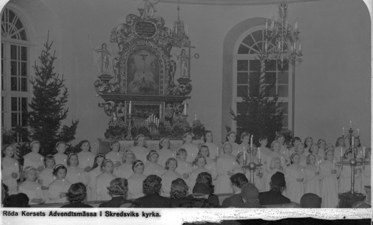 Enligt text på fotot: "Röda Korsets Adventsmässa i Skredsviks kyrka".