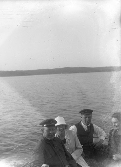 Enl. text i blå bok: "Personer i sittbrunnen på båt."