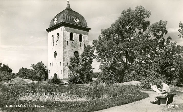 Tryckt text på bilden: "Klocktornet. Uddevalla."