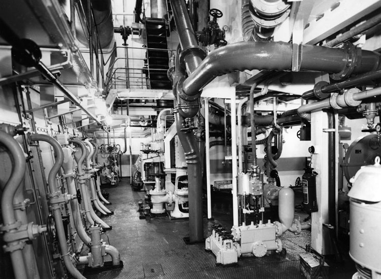 Titel: Interör från 124 M/T Astrid Elisabeth, maskinrum.