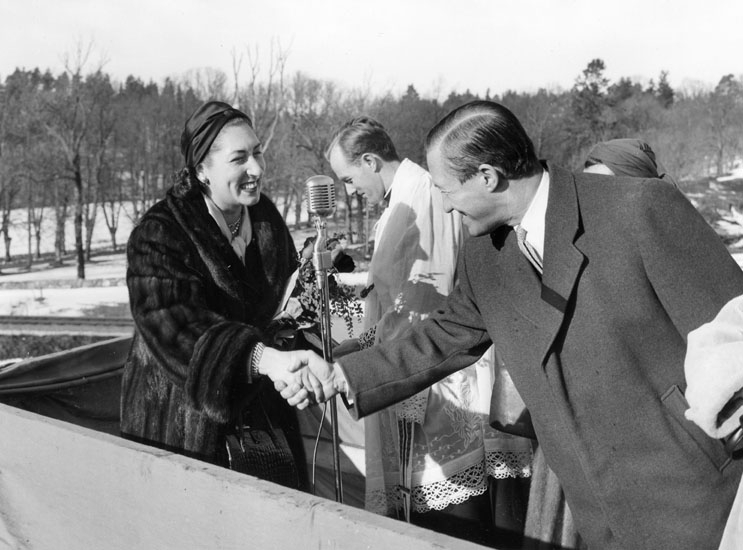 Vid dop och sjösättning av fartyg 125 M/S Point Lacre. Fartygets gudmor tillsammans med Uddevallavarvets representant.