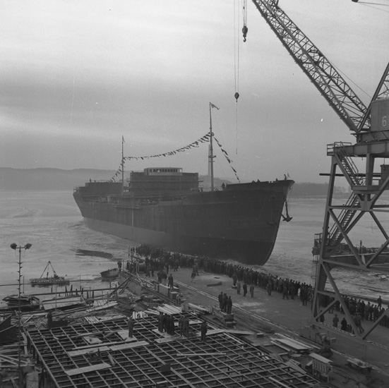 Dop och sjösättning av 159 M/T Ragna Gorthon.