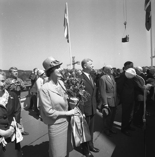 Dop och sjösättning av fartyg 215 M/T Taurus. Fartygets gudmor i förgrunden och Uddevallavarvets dåvarande VD Johan Schreil bredvid henne.