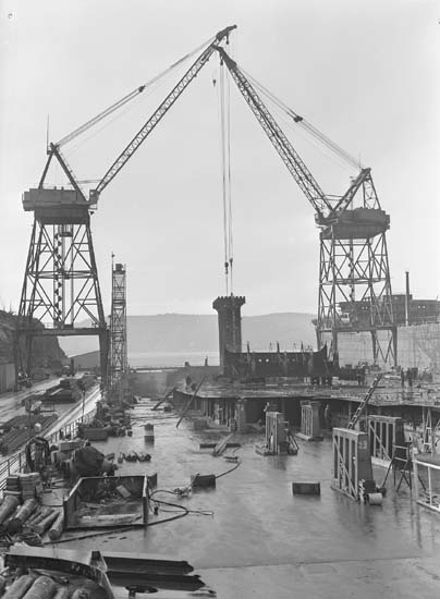 Hängning av första sektionen. Fartyg nr 204 T/T Asa V. Call.