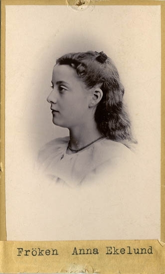 Text på kortets baksida: "Fröken Anna Ekelund, g. m. bankdir. John Bark Uddevalla".