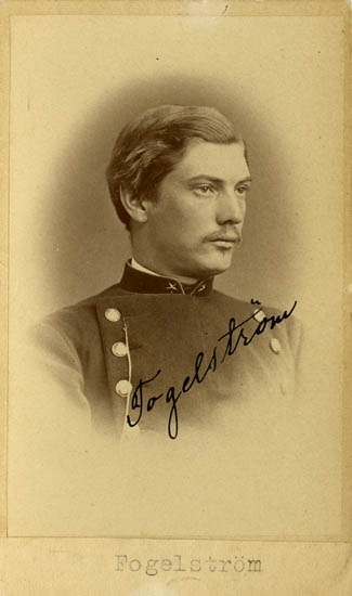 Text på kortets baksida: "Kapten Adolf Fredrik Fogelström. Boh. reg. F. 18/7 1845.