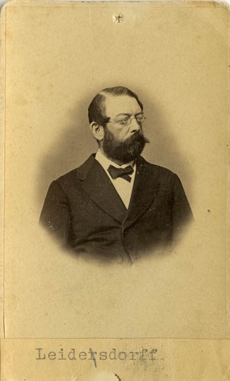 Text på kortets baksida: "Skolinspektör Leidesdorff. Rektor Carl Leonard Leidesdorff Strömstad. F. 1831 d.1913. Folkskoleinspektör i länet".