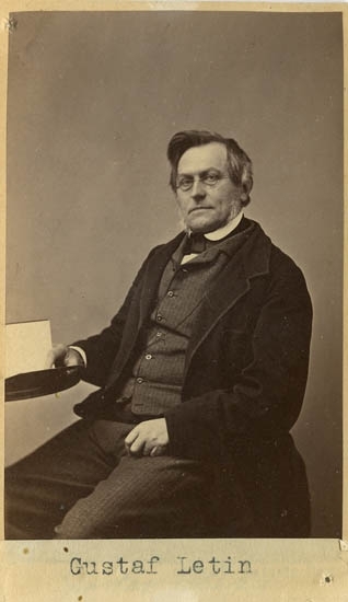 Text på kortets baksida: "Språkläraren Gustaf Henrik Letin, f. 15/4 1815 d 14/7 1881. Gift med Aurora Sofia Letin, f. 13/4 1812".