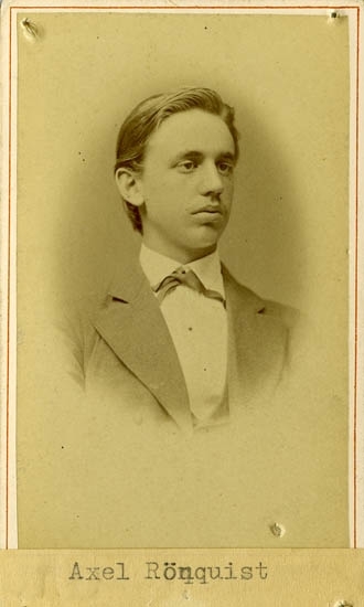 Text på kortets baksida: "Axel Rönqvist, filosofistuderande i Upsala 81".