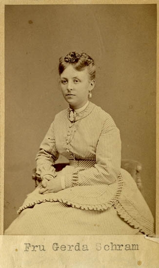 Text på kortets baksida: "Fru Gerda Schram, f. Ahlbom".