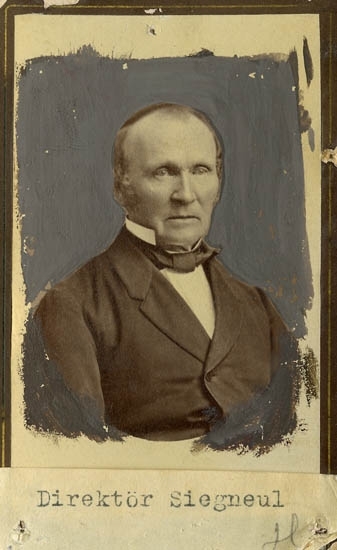 Text på kortets baksida: "Fredrik Signeul, 1810 d.1890. SF. i U-a 1863-64 SF. 67-68".