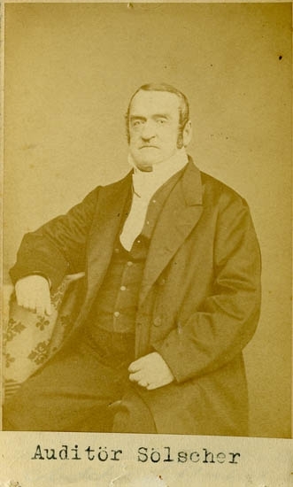 Text på kortets baksida: "Auditör Aug. Sölscher".
