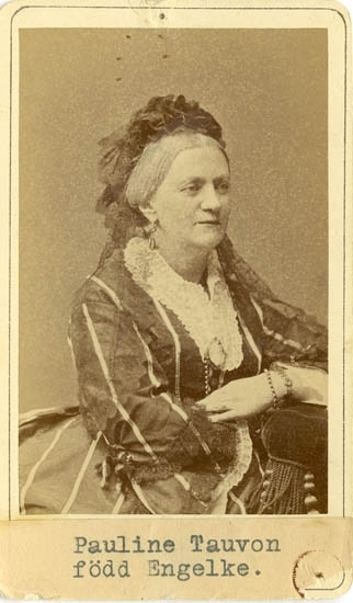 "Presidenskan Pauline Tauvon, född Engelke" enligt text på kortets baksida