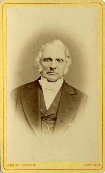 Text på kortets baksida: "Garvare Johan August Uddgren, f, 1802 d 1883 ".