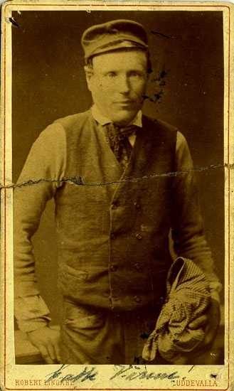 Text på kortets baksida: "Kalle Wärme Uddevallorginal omkom 1880".