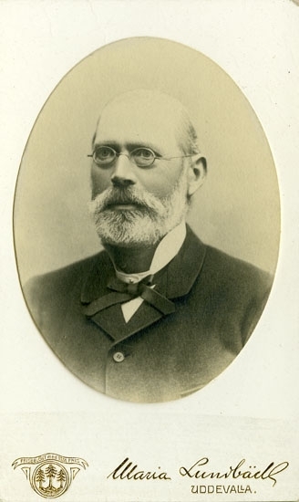 Text på kortets baksida: "Tändsticksfabrikör Adolf P. Zachau, f. 1829 d.1899".