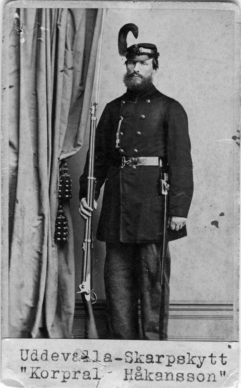 Text på kortets baksida: "Uddevalla Skarpskytt "Korpral Håkansson".