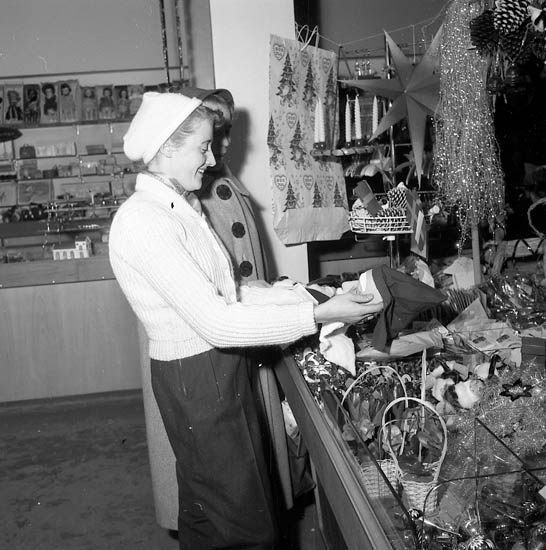 Enligt notering: "Julhandel på Resia U-a Kerstin Larsson till höger. Frida Dygd U-a Kerstin Larsson U-a 20-12-55".