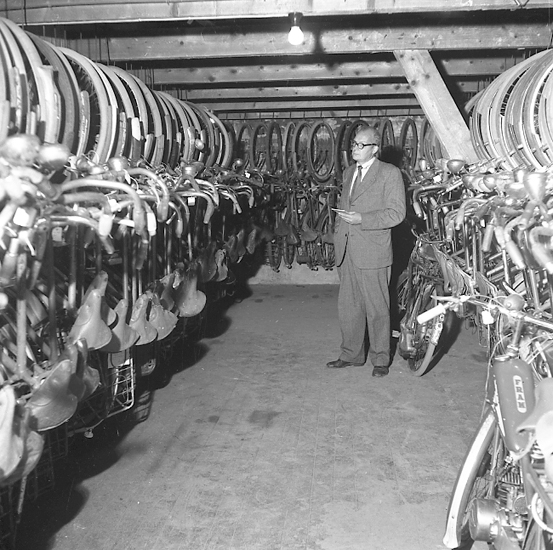 Enligt notering: "Cykelavdelningen på Polisstationen Aug 57".
